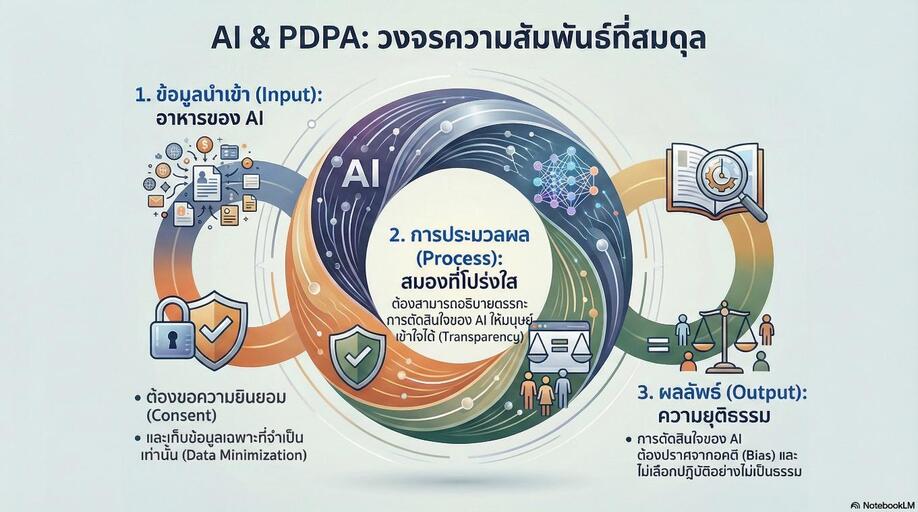 - มุมของ PDPA: “ระวังนะ! ถ้า AI ตัดสินใจโดยมีอคติ (Bias) เช่น เลือกปฏิบัติทางเพศหรือเชื้อชาติ โดยใช้ข้อมูลส่วนบุคคลมาวิเคราะห์ ถือว่าผิดกฎหมายและจริยธรรมร้ายแรง”